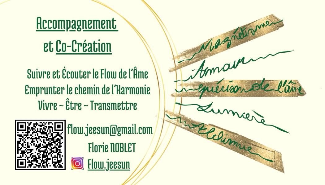 "Suivre et écouter le flow de l'Âme, Emprunter le chemin de l'Harmonie, Vivre, Être, Transmettre".
